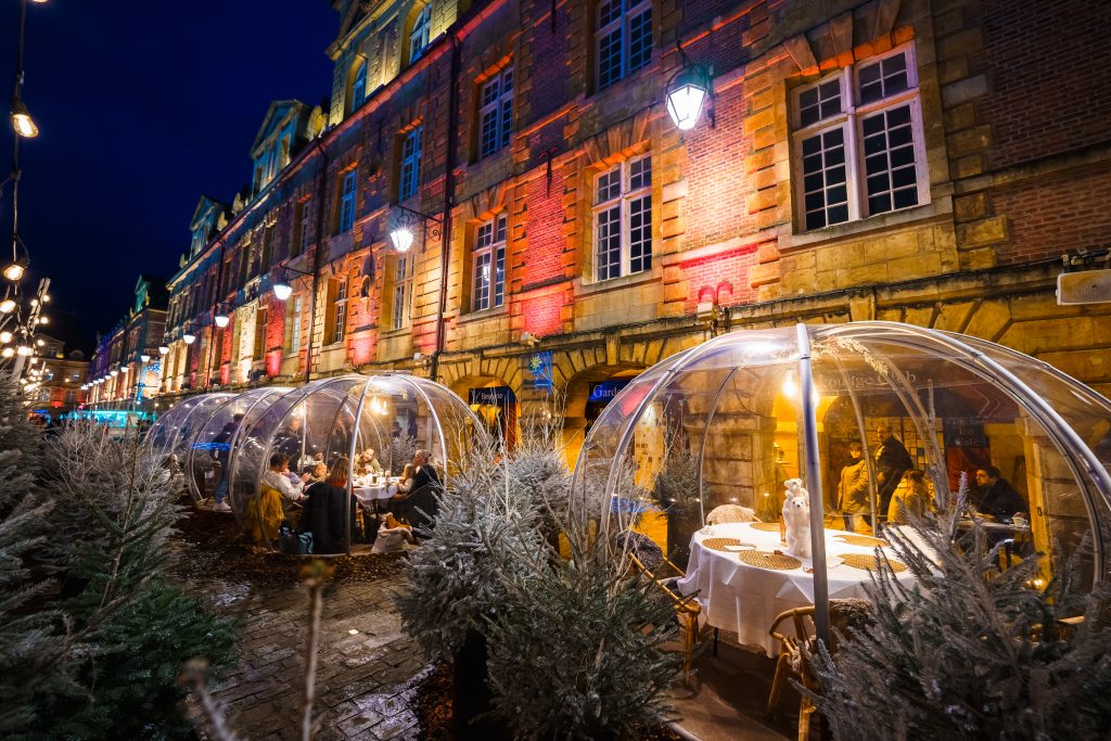 Profitez d’un moment hors du temps au coeur de la magie du Marché de Noël ! Nos igloos vous accueillent jusqu’à 10 personnes selon nos différentes formules.