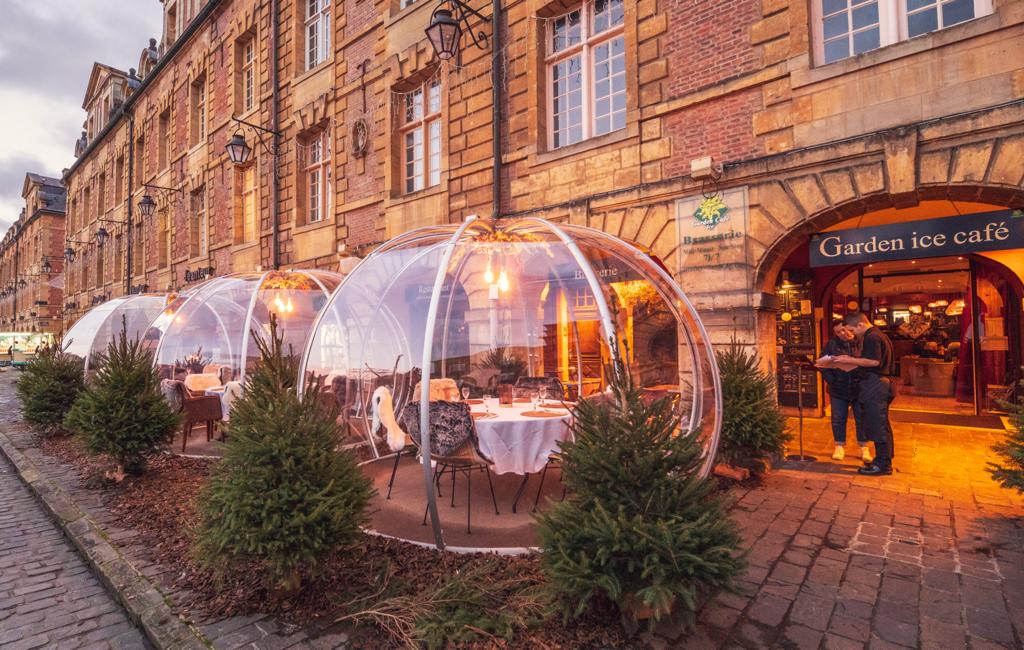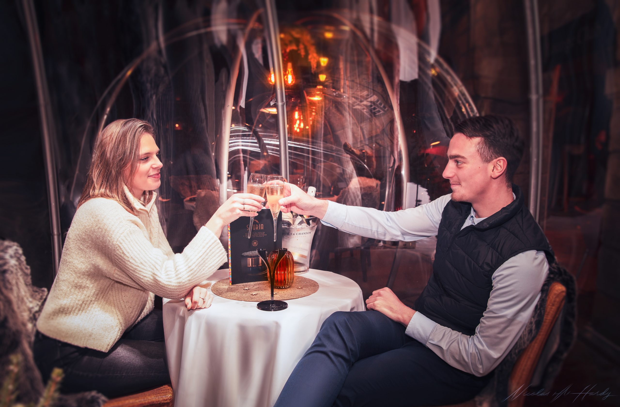Craquez pour un igloo privé à 130€/personne, comprenant votre menu, une coupe de Champagne offerte/personne et votre Love Box surprise !